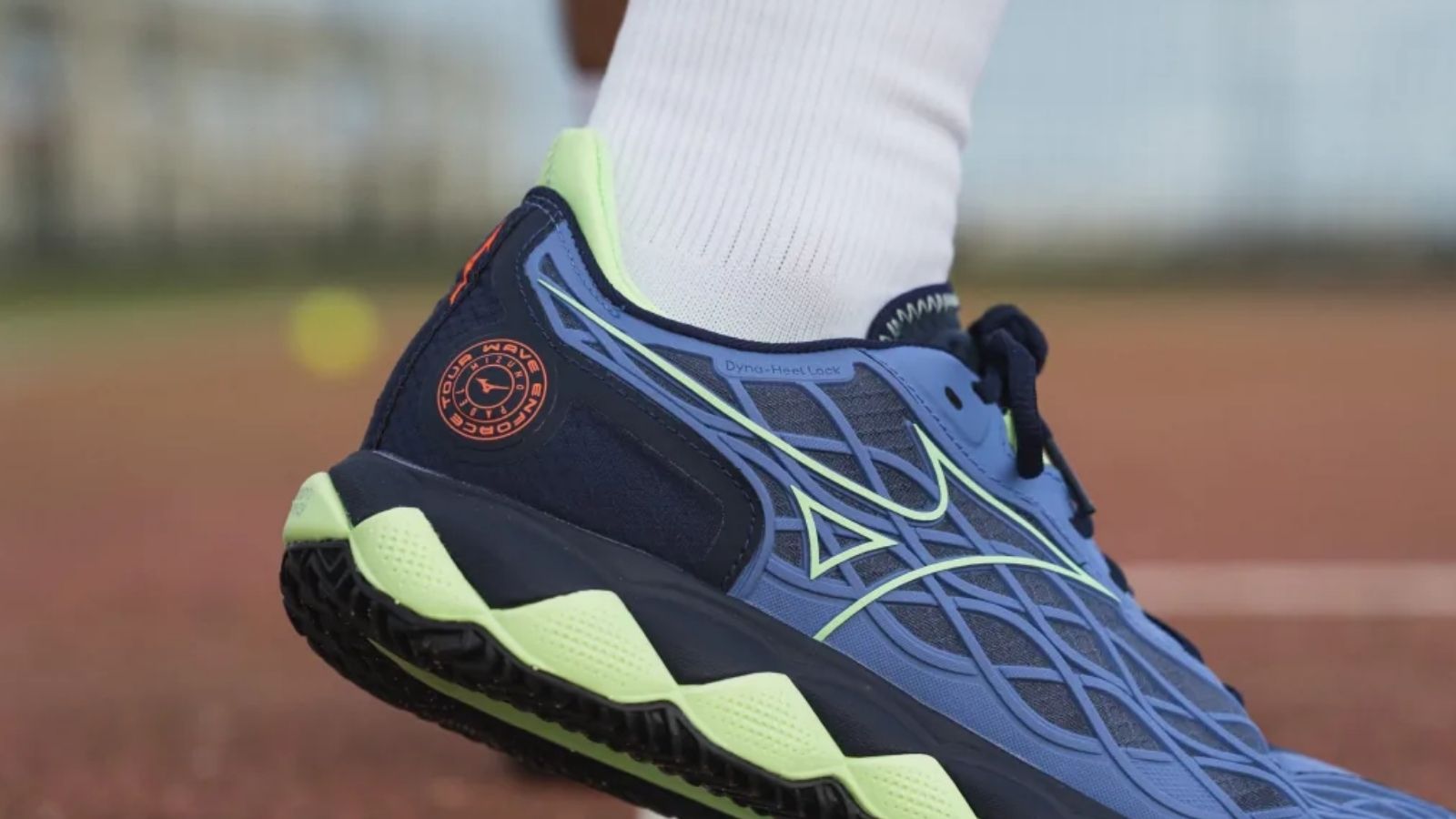 Một đôi giày tennis tốt phải đảm bảo sự ổn định, và Mizuno Wave Enforce Tour đã làm rất tốt điều này. Mặc dù không phải là một “quái vật” về độ ổn định như giày Asics Gel Resolution 9 hay giày Adidas Barricade với các khung nhựa TPU cứng cáp, Enforce Tour lại chọn một cách tiếp cận thông minh hơn. Sự ổn định của nó đến từ một nền tảng đế cực rộng, đặc biệt là ở phần gót chân, rộng hơn gần 1cm so với mức trung bình. Điều này tạo ra một bề mặt tiếp đất an toàn, giúp bạn tự tin trong mọi pha di chuyển ngang. Thêm vào đó, hệ thống khóa gót Dyna-Heel Lock độc đáo kết nối trực tiếp với dây giày, ôm chặt lấy cổ chân và gót chân, loại bỏ hoàn toàn hiện tượng trượt gót khó chịu.