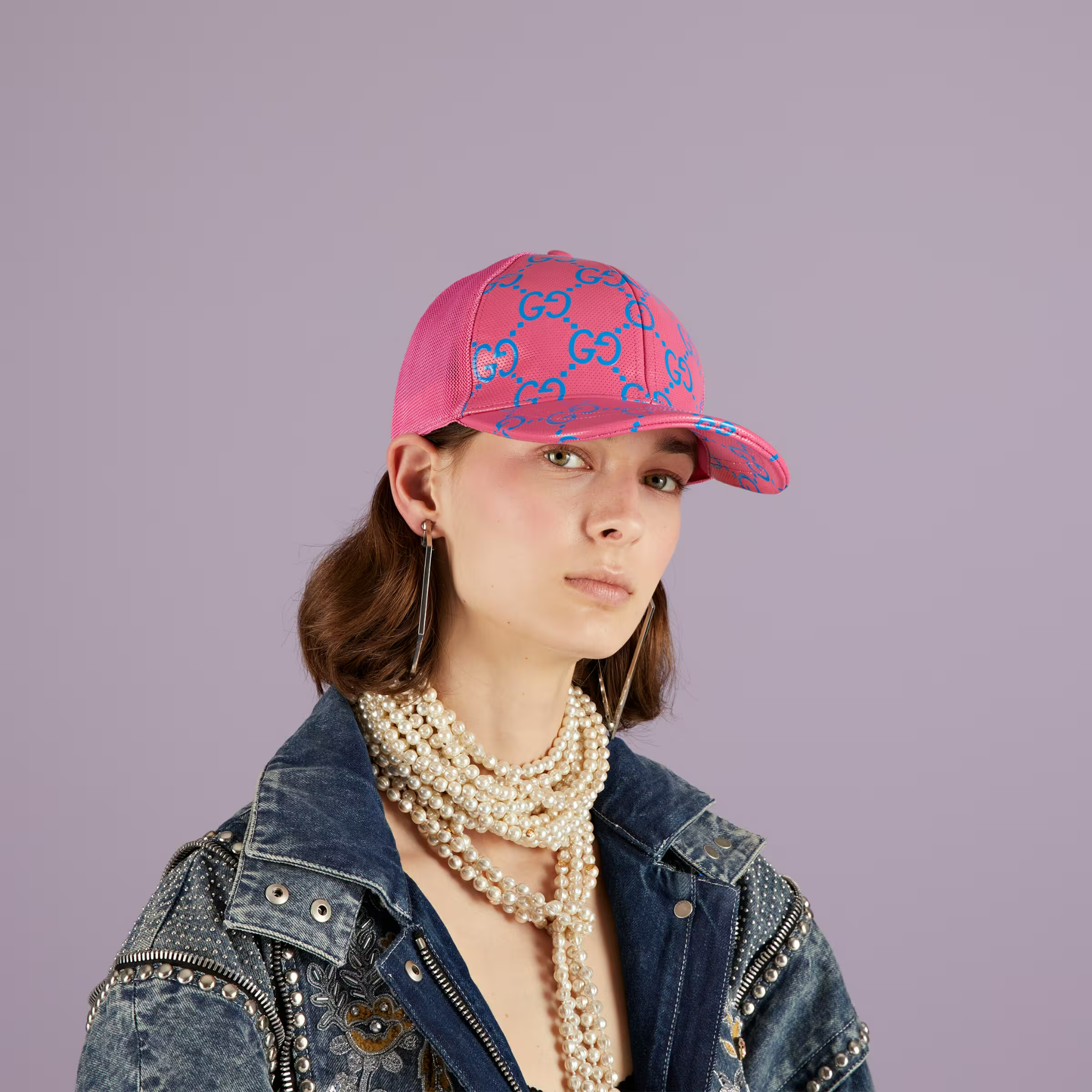 Mũ Gucci GG Leather Baseball ‘Pink Blue’ 728853-4HAWH-8972