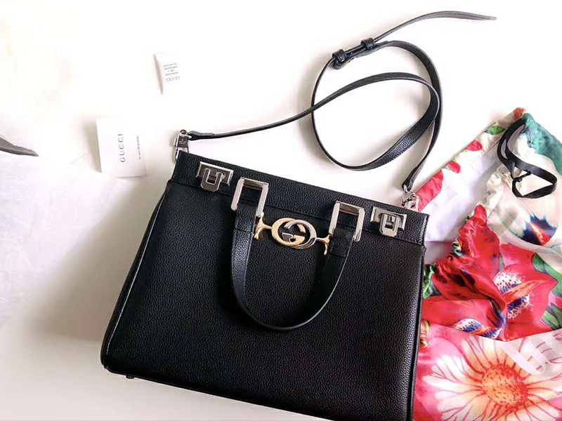 Túi Gucci Zumi Grainy Leather Top Handle Bag Black 569712-1B90X-1000